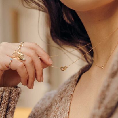 Connection of two perfect gold loops front and center – an expression of individuality while celebrating harmony. Keeping it real just got easy.
